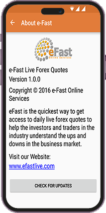 eFast offers Forex Quotes for every level of traders and investors. eFast leads the market in all aspects. The real time quotes are delivered to ypor desktop and smart phone 24x7 without any delay. We offer accurate and reliable Live International Market rates i.e Forex, Gold, Metal etc with provision of conversion in your desired currency. We are offering 7 days free trial version of eFast through our website to help you assess id eFast caters to your needs. The trial product for PC can be downloaded from http://www.efastlive.com/Downloads.aspx and for smart phones http://m.efastlive.com
